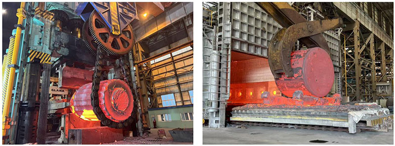 在特钢冶炼环节,公司秉持“极 致纯净、稳定高效”的核心原则,配置国际的100吨电弧炉、LF炉外精炼与VD真空脱气双精炼系统,构建起多层次、高精度的钢质净化体系。这套双精炼系统协同作用,可精准控制钢液中磷、硫等杂质元素含量,实现单重300吨级高纯净度、高致密度钢锭的稳定冶炼与浇铸,钢锭内部组织均匀、无缩孔、无严重偏析,完全满足石化、核电、军工等领域高端锻件对钢质的严苛要求,为后续锻造环节奠定坚实基础。